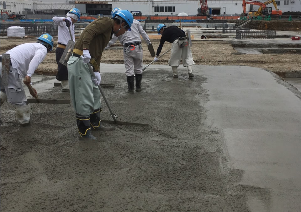 流し込んだコンクリートは平らにならし、表面を綺麗に仕上げます。主な内容